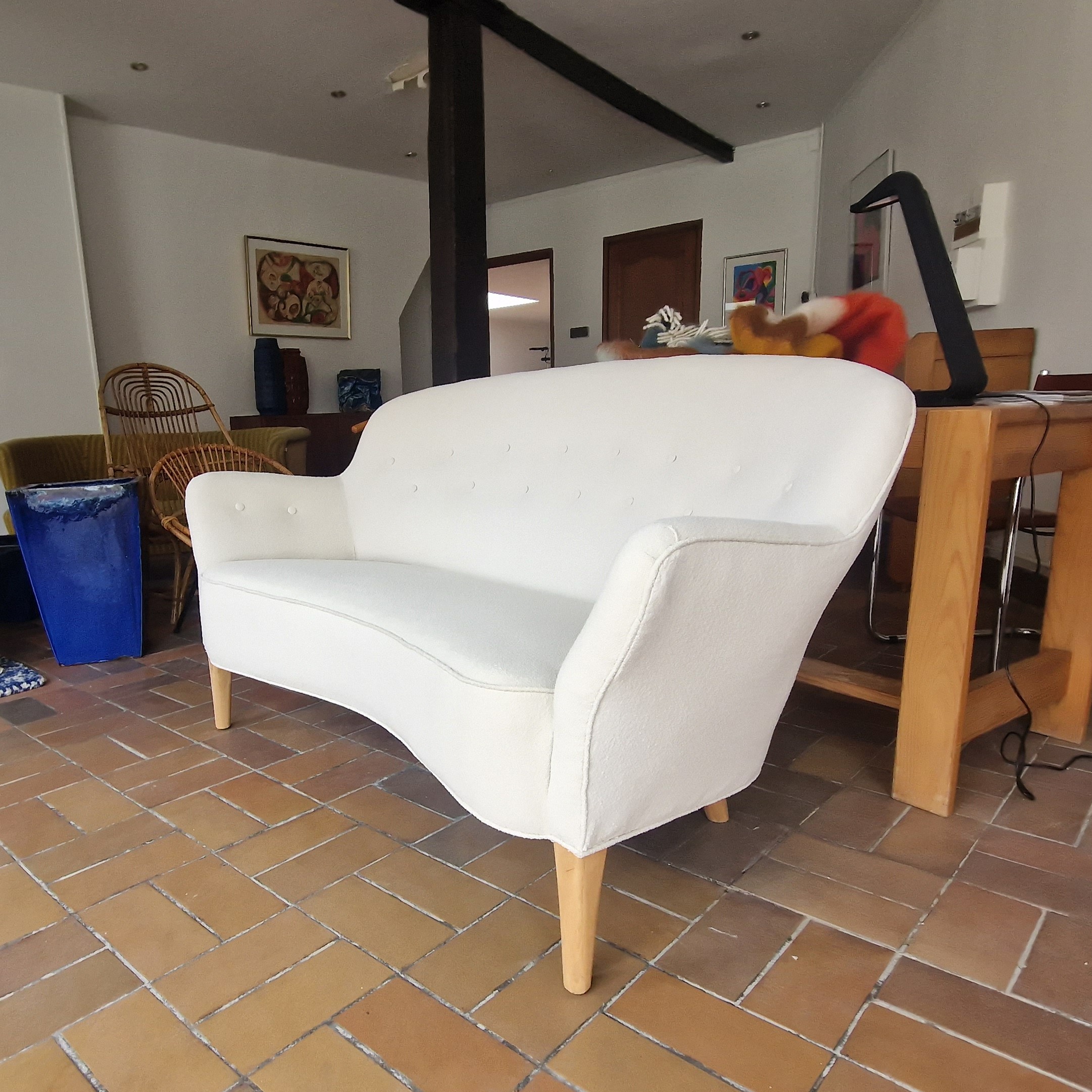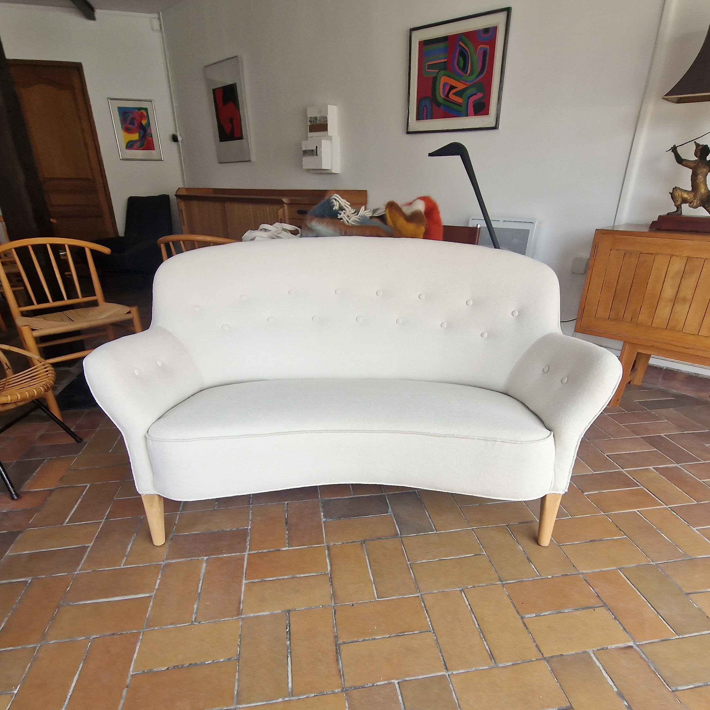 Canapé scandinave attribué à Finn Juhl, Slagelse éditeur,; Danemark années 50. Entièrement restauré et retapissé
