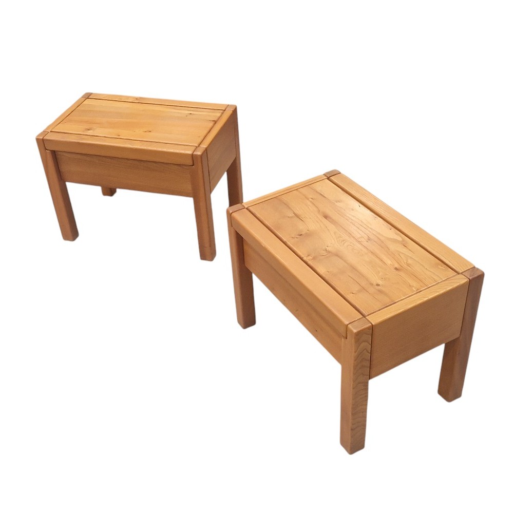 Paire de chevets vintage en orme massif, édition « Maison Regain » France circa 1980